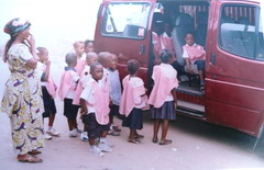 Im Februar 2009 haben wir einen Kleinbus per Schiff in den Kongo geschickt, der mit sehr vielen Sachspenden für die Schule (Gerätschaften für den Chemie- und Physikunterricht, Sportgeräte, Musikinstrumente, Materialien für den Kindergarten- und Grundschulbereich, eine Abzugsmaschine, ein Stromaggregat, Rollstuhl für ein gehbehindertes Kind ) sowie Verbandsmaterial und Medikamente für die Krankenstation in Mont-Ngafula und dem Krankenhaus in Ngeba, 120 km westlich von Kinshasa gefüllt wurde. Der Kleinbus steht der Schule zur Verfügung.